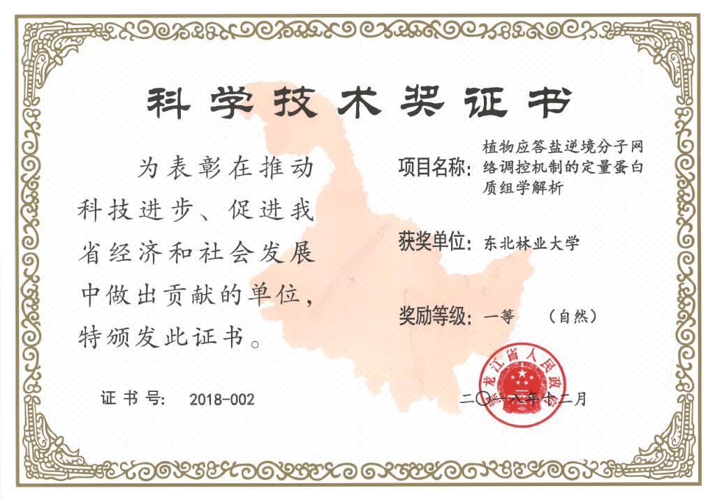 我中心阎秀峰教授和戴绍军教授的研究团队长期开展盐碱地植物资源利用与盐逆境应答分子机理研究。近期该团队完成的《植物应答盐逆境分子网络调控机制的定量蛋白质组学解析》项目获得黑龙江省科学技术奖自然科学类一等奖。